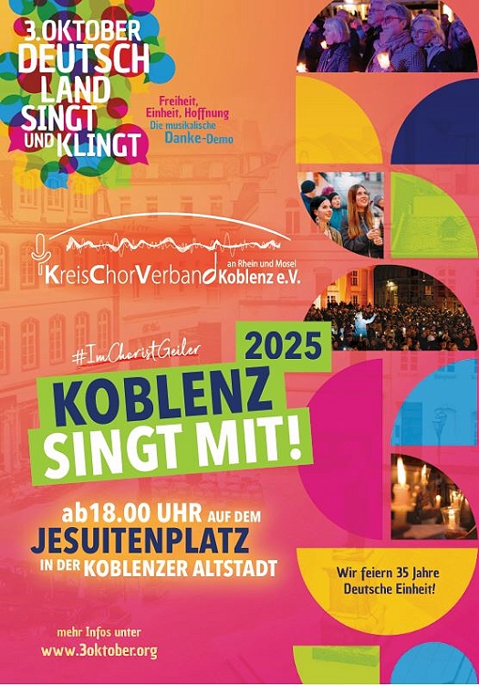 Am deutschen Nationalfeiertag werden Menschen an mehr als 200 öffentlichen Plätzen in der gesamten Bundesrepublik gemeinsam singen. Koblenz wird nach dem Erfolg in den vergangenen Jahren …